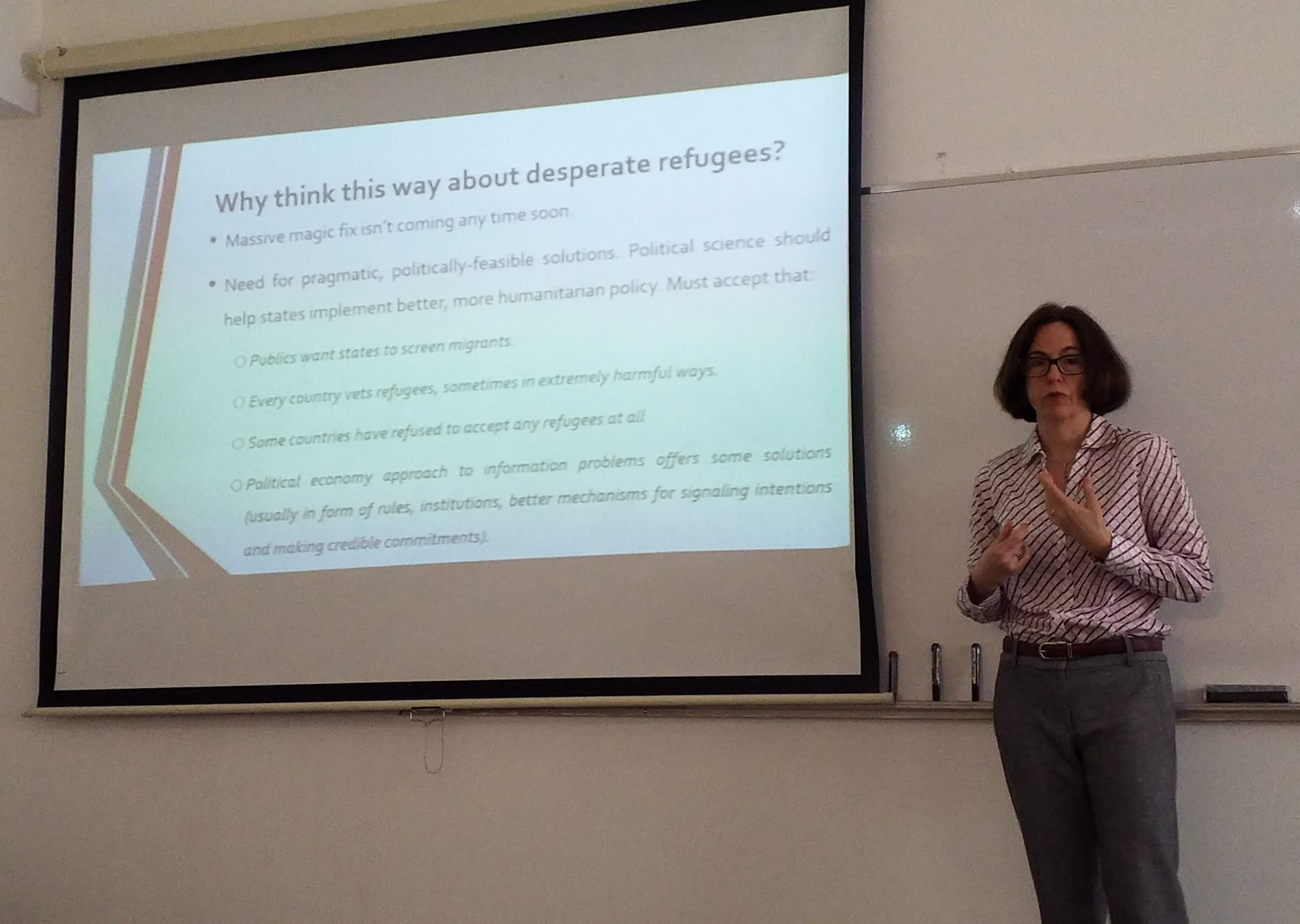 The Universidad del CEMA’s Political Science and International Relations Department, in conjunction with its Economics Department and CADAL, organized a seminar analyzing immigration as an information problem. The speakers presented an evaluation of the «Circles of Trust» as a viable tool in Argentina’s refugee policy. The seminar was held at the Universidad del CEMA and the speakers included Sybil D. Rhodes, Daniela González Greco, and Eric Cuevas.